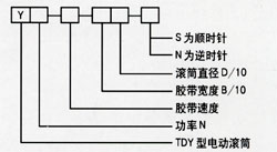 订货代号说明: TDY75型油冷式电动滚筒外形尺寸表: