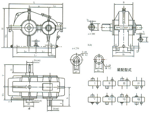 | ZD、ZDH、ZDSH减速机的标记包括:型号、中心距、传动比、装配型式等 |